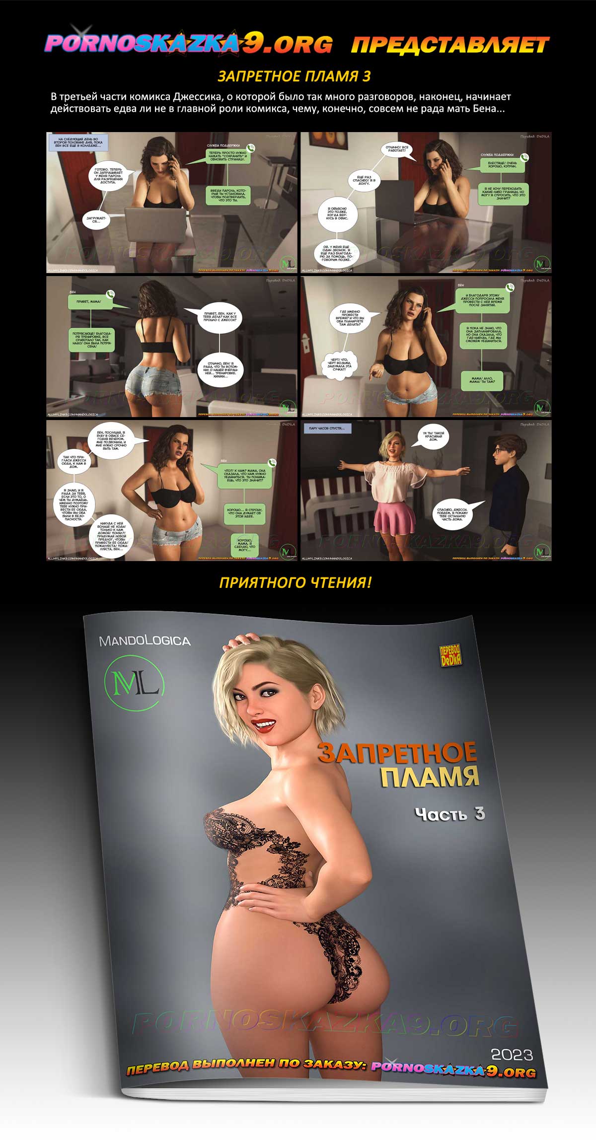 Порно комикс «Запретное пламя. Часть 3.» В третьей части комикса Джессика, о которой было так много разговоров, наконец, начинает действовать едва ли не в главной роли комикса, чему, конечно, совсем не рада мать Бена…